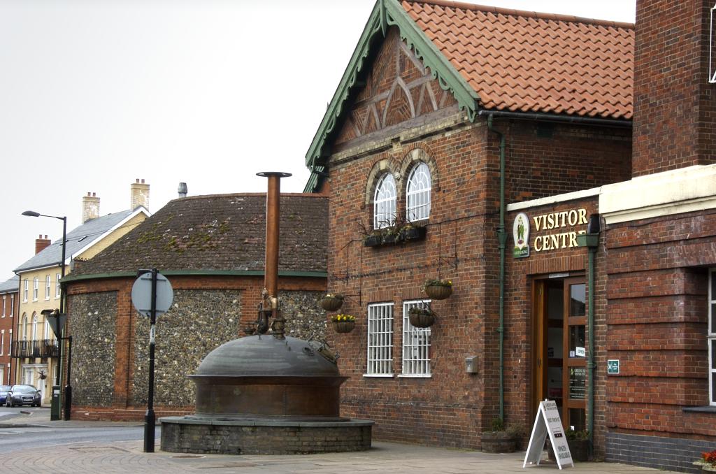 The kettle was in use by Greene King from 1938 onwards, at the end of this kettle's life it was decided that it should be placed on public view as a symbol of what Greene King does, and a reminder to those passing of what happens behind the walls of the building behind. the seat was added in 1984 as somewhere for people to sit and admire both the brewing house and the Theatre Royal on the opposite side of the road. | |||||||||||||||||||||||
