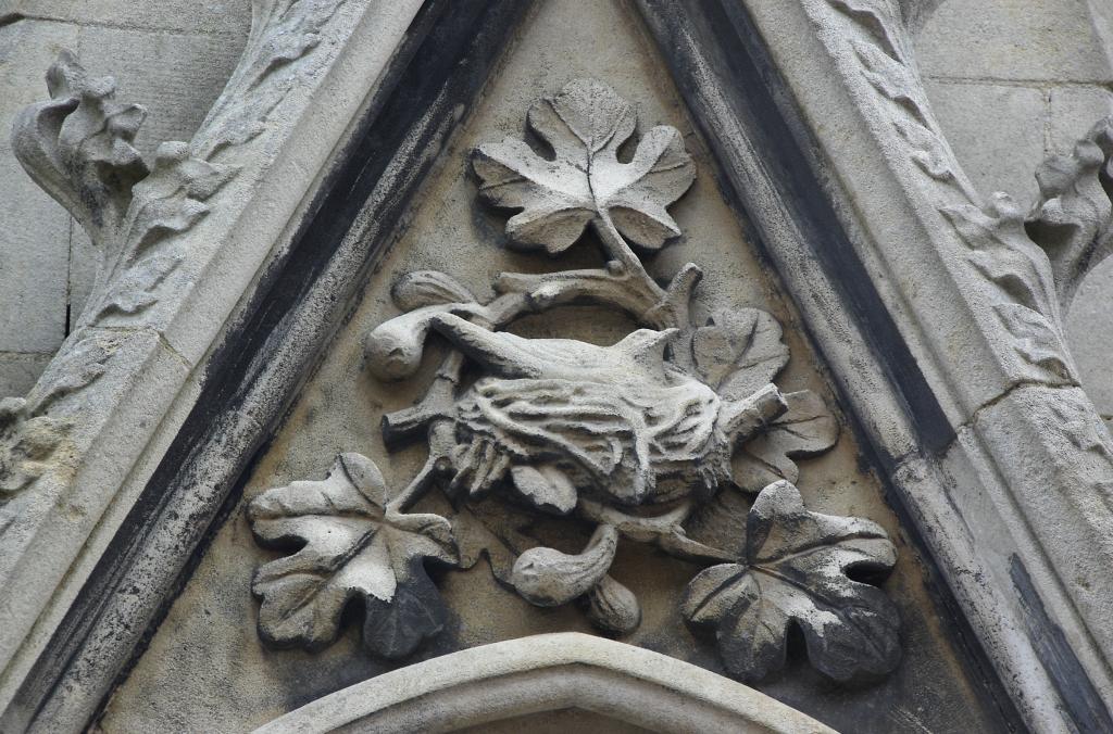 The motto OCULUS IN COELUM( heaven's eye) is illustrated by the eye of god in the sun. It alludes both to the family motto RIEN SANS DIEU (nothing without God) and to the town of Eye. This must also have inspired the castle in another coat of arms as an allusion to Eye castle and to the family's ownership of the town from 1824. Above a is a bird nesting in a fig tree The Kerrison coat of arms on one side shows three galtraps of the field and a sword erect - and two medals won by has father (Sir Edward Kerrison 1776-1853) serving under the Duke of Wellington at Orthes in the Peninsula war and Waterloo hangs from a fox's head with a dragon twisting on itself above. It hangs from a fox's head an allusion to his wife's heraldry and on the Kerrison coat of arms is combined with those of his wife - Fox Strangeways, the Earls of Ilchester. | |||||||||||||||||||||||